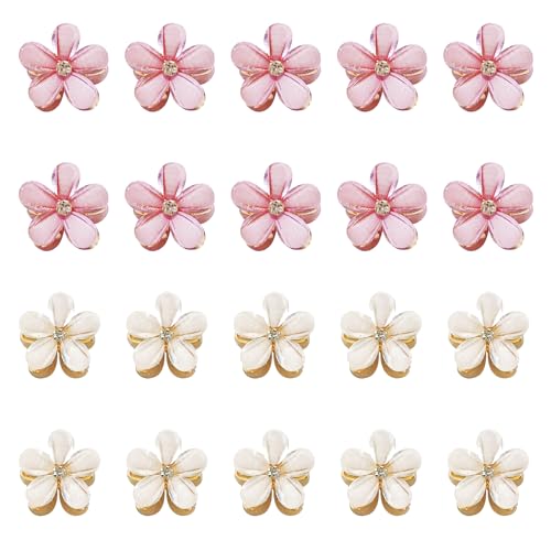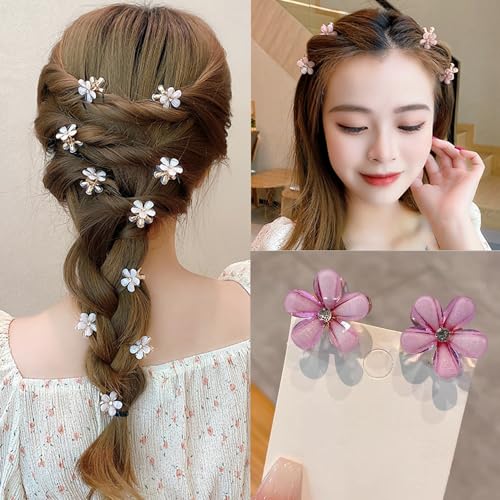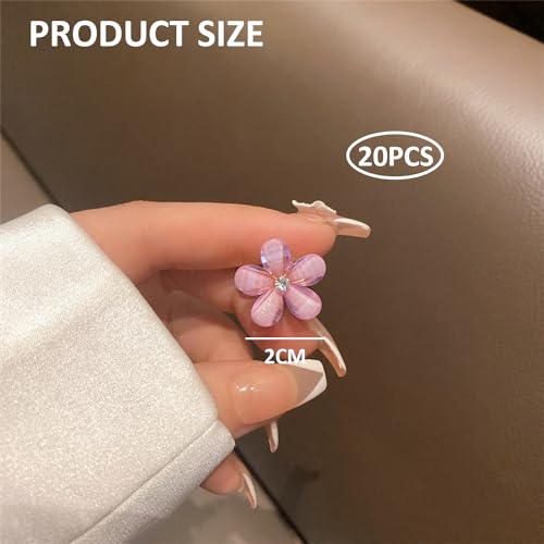 20 clip a fiore di cristallo, mini clip a forma di fiore, fermagli per capelli per ragazze e donne, graziosi piccoli fermagli per capelli per servizi fotografici, tutti i giorni (bianco, viola)