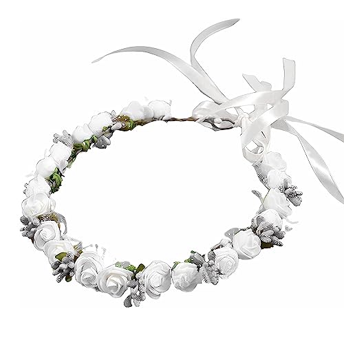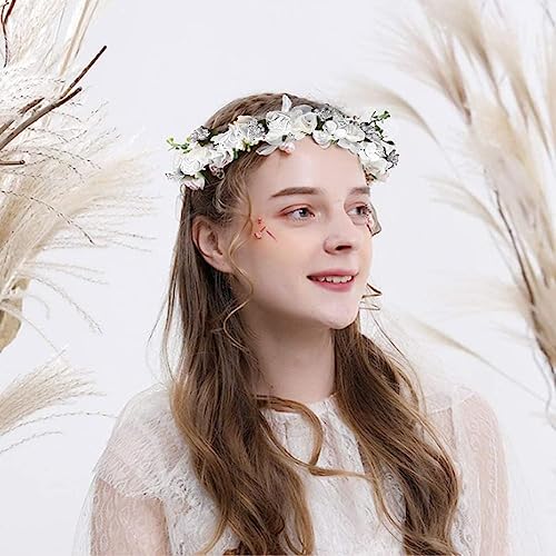 XPEX Fiore Ghirlanda, 1 PCS Corona Di Fiori Per Matrimonio, di Fiore, Fasce del Fiori con Il Nastro Elastico Regolabile, Corona Capelli Accessori,per Feste, Matrimoni, Spiaggia (bianco)