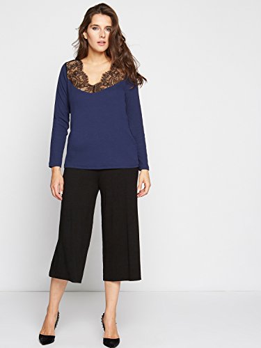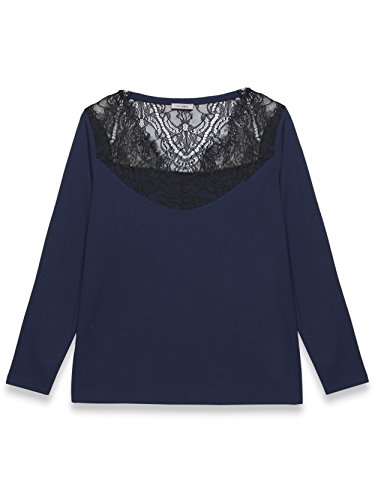 Fiorella Rubino: Maglia Maniche Lunghe con Scollo in Pizzo. Blu, Taglia XS (Italian Plus Size)