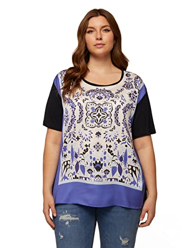 T-shirt con davanti in raso dalla stampa bandana, con bordi tinta unita, dietro e maniche in jersey, scollo a barchetta