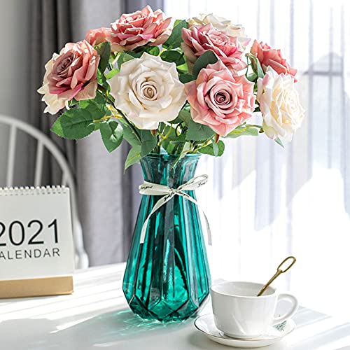 Fiori artificiali fiori finti piante in plastica di seta bouquet di fiori decorativi per tavolo di compleanno con fiori di classe per tavolo, casa, ufficio, feste, decorazione artistica (rosa+bianco)