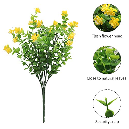Fiori Artificiali, 4 Pacchi Fiori di Eucalipto Finti Fiori di loto in Plastica Mazzi di Piante Arbusti Piante per Giardino Interno ed Esterno Portico Patio Ufficio Decorazione Della Casa (Giallo)