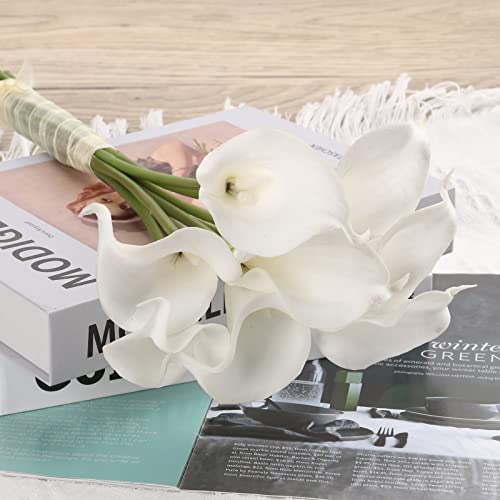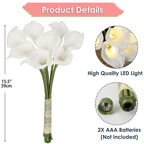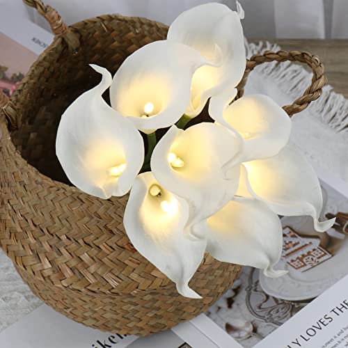 Fiori artificiali con luce a LED, 8 pezzi bianchi finti calla Lily vero tocco di fiori finti bouquet lampada da notte regalo per casa matrimonio organizzazione ufficio interno decorazione centrotavola