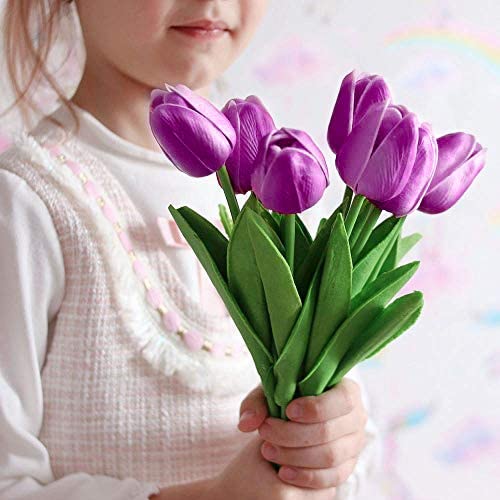 LUCY WEI Fiori Artificiali di Reale Tulipano in Viola,12 Pezzi,Fiori in Lattice con Tocco Tulipani per Matrimoni,Feste,Casa,Giardino,Ufficio