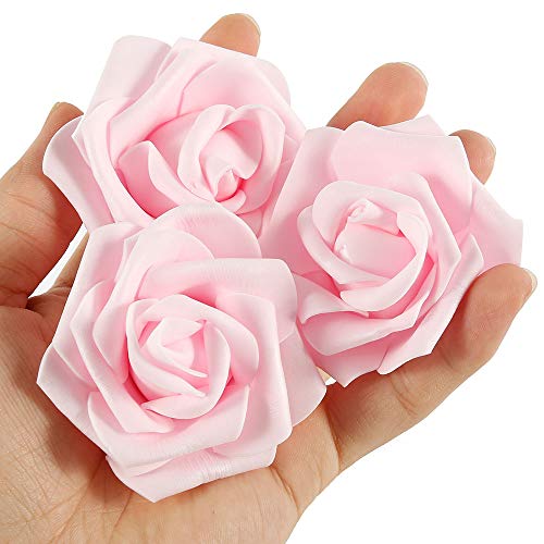 Fiori artificiali, rose in schiuma 7,1 cm per matrimoni, spose, bouquet, feste, decorazioni, 100 pezzi Pink