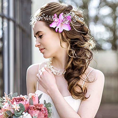 Clip di fiori per capelli da donna con orchidea in chiffon, gigli da sposa per capelli da sposa clip a rullo per capelli (H, taglia unica)