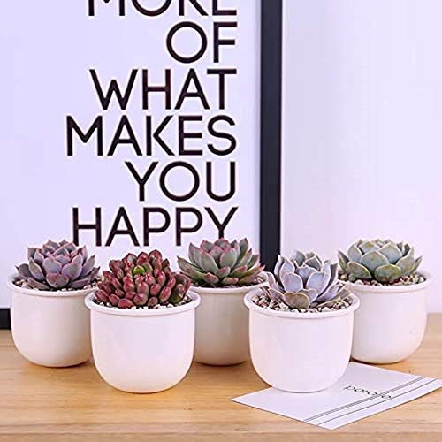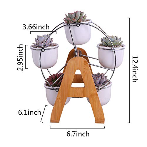 Y&M (TM) - Set di 5 vasi da fiori in ceramica da appendere, per piante grasse e grasse con ruota panoramica, supporto in legno, set da 5