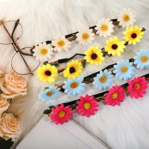 Fiori Fascia 12Pz, Fasce Floreali di Ghirlanda con Nastro Elastico Regolabile Moda Corona di Fiori Multicolore Fasce Corona di Fiori Ghirlanda Girasole Fiori Corona Fascia Capelli per Matrimonio Festa