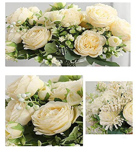 【Caratteristiche】: 2 mazzi: ogni bouquet è composto da 7 diverse composizioni floreali, con forma elegante, alto grado di simulazione e nessun odore particolare. Ci sono molte foglie, forma piena, vene chiare, materiali di alta qualità, sensazione della mano confortevole, più vivido, nessuno sbiadimento e nessuna manutenzione richiesta. La lunghezza totale dei fiori artificiali è di circa 33 cm.
