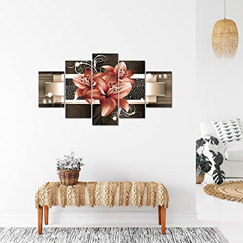 Runa Art Fiori Gigli Murali Tela Non Tessuta 5 Pezzi Astratto Beige Marrone Camera Da Letto Corridoio 008653b