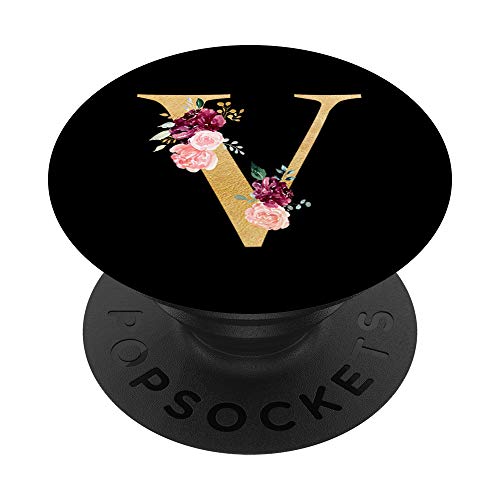 Pink Rosa Fiori Monogramma Floreale Iniziale Lettera V PopSockets Supporto e Impugnatura per Smartphone e Tablet