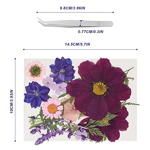 Fiori Pressati Secchi Naturali, DIYCUT Fiori Secchi Decorativi Piccoli, con Pinzette, Adatti per Cornici Fotografiche, Fiori Secchi in Resina e per la Creazione di Gioielli