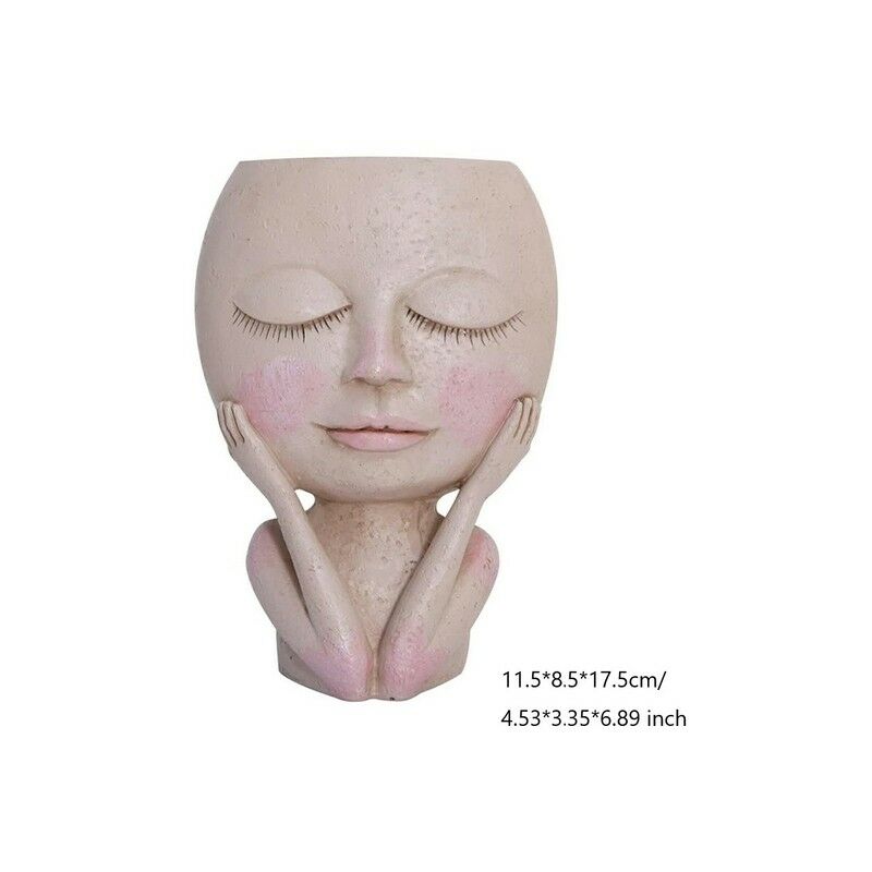 Ragazze Viso Testa Vaso di Fiori Fioriera Succulente Fiore Pianta Contenitore Vaso Vaso di Fiori Figura Garden Decor Nordic Tavolo Ornamento Caratteristiche: 1. Materiale: fatto di alta qualità materiale in resina, sicuro e non tossico moderna umanoide resina ritratto vaso succulente disposizione dei fiori vaso di fiori. 2. Applicazione: molto adatto per la coltivazione di piante grasse, erbe, cactus o altri piccoli piante o fiori. 3. Decoration: o utilizzato per ufficio o scrivania a casa decorazione. Aggiungere un po 'di calore e di interesse per la vostra camera. Descrizione: Questo prodotto è una statua, fatto di alta qualità materiale in resina, sicuro e non tossico moderna umanoide resina ritratto vaso succulente disposizione dei fiori vaso di fiori. Specifiche tecniche: Materiale: Resina Utilizzare posto: desktop Usato per: verde fiori/piante Tipo: Gli Occhi chiusi, Strabismo (opzionale) Gli occhi chiusi formato: 11.5*8.5*17.5 centimetri/4.53*3.35*6.89 inch Gli occhi chiusi