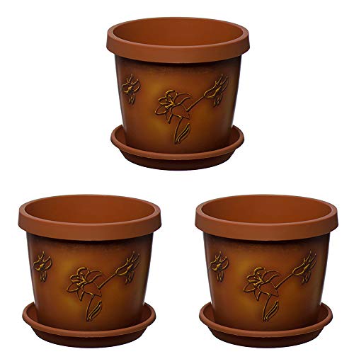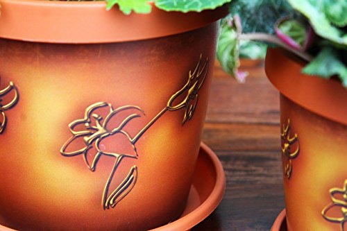 Set di 3 vasi da fiori con sottovaso, in terracotta, 22 cm Terracotta flower