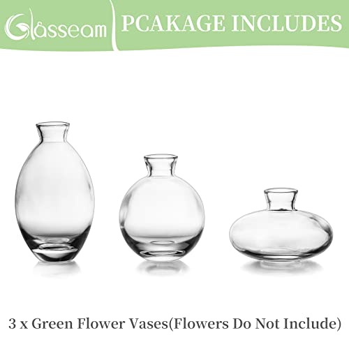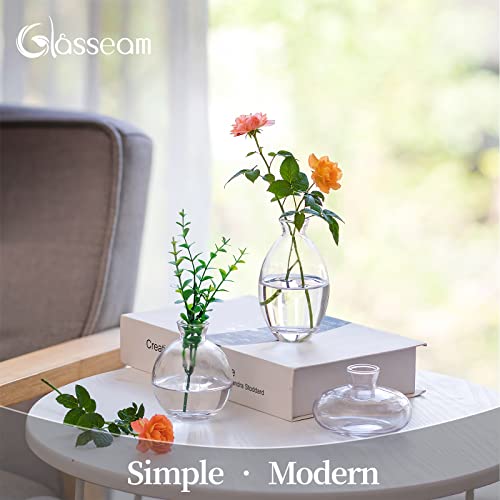 Set Vasi Fiori Vetro Piccoli Decorativi: Glsseam 3Pezzi/Set Trasparente Mini Vaso Interno Tavolo Eleganti Design Moderno Basic Art Centrotavola Vintage per Soggiorno Casa Bomboniere Tulipani Rose