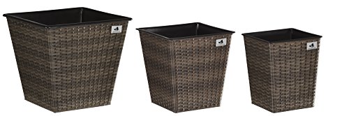 3 polyrattan: 41,5 x 41,5 x H38 - circa 61 litri / 32 x 32 x H32 - circa 31 litri / 26 x 26 x H30 - circa 16 litri ^ Bella forma Per interni ed esterni ^ resistente alle intemperie ^ Completamente impermeabile Kunststoffmaterial