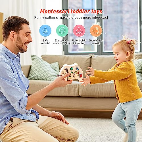 Fiotha Busy Board, Giochi Montessori, Pannello Sensoriale Bambini con Luci a LED Educativi, Montessori 1 Anno, Busy Board Montessori 1 Anno, Giochi in Legno per Bambini 1 2 3 4 Anni