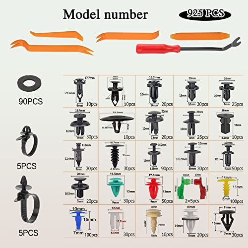 Fippy 925PCS Clip di fissaggio universali per auto, Assortimento di clip di fissaggio per carrozzeria in 26 misure più diffuse, Kit di montaggio della carrozzeria dell'auto con strumenti
