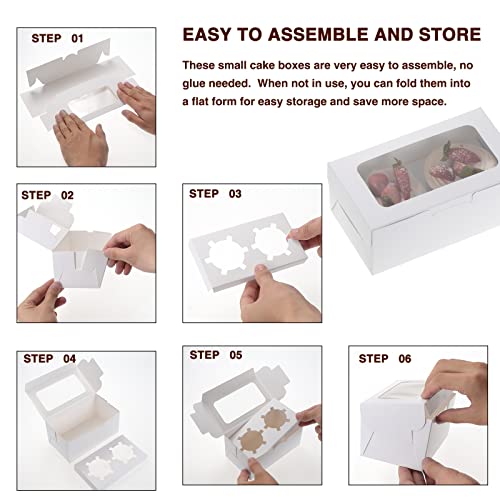 Fippy 50 Pezzi Scatole per Cupcake a 2 Fori con Finestra, Piccole Scatole per Muffin, Bianche Scatole per Cupcake Ingrosso per Torte Biscotti Bessert, Bianche