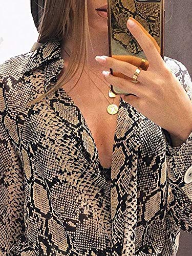 Firally Camicia/Top a Maniche Lunghe Donna,Top con T-Shirt con Stampa Serpente,Camicetta Pullover di Modo Casuale (Cachi, Medium)