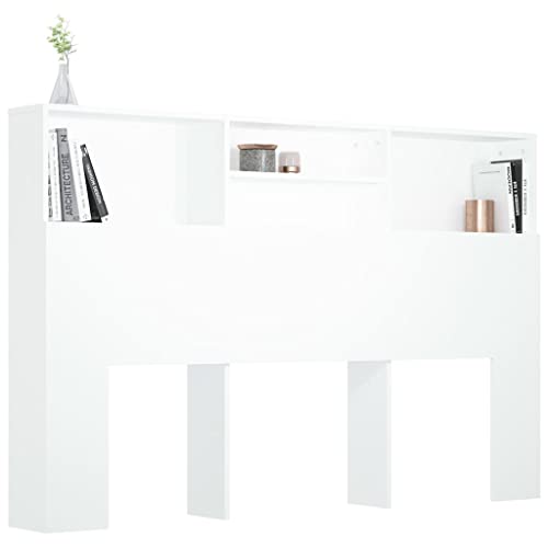 FIRBNUS Testiera con Contenitore 160x19x103,5 cm Testata Letto Matrimoniale Muebles Dormitorio Spalliera in Legno Bianco Mueble Habitacion