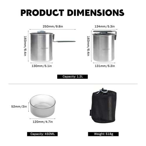 Fire-Maple Antarcti Duo Set da Cucina da Campeggio con Pentola, Ciotola e Forcella, Pentole Portatile Set, Manico Pieghevole, Kit Camping Cookware