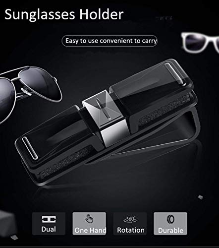 Si attacca saldamente all'aletta parasole, la parte reggi-occhiali può ruotare a 360°, non ostacola la vista al conducente e non graffia le lenti. Adatto alla maggior parte dei veicoli e tutti gli occhiali da sole o occhiali da vista.