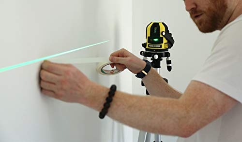 Firecore Livella laser multilinea autolivellante verde, laser automatico 4 linee verticali e un linee orizzontale, fino a 50m con rilevatore laser, con base girevole a 360°, con 2 Batterie (FIR411G)