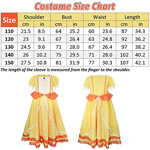 Firecos Costume Principessa Cosplay Daisy Vestito Abito per Ragazze Gioco di Ruolo Personaggio Cartoon Costume per Bambini Carnevale Halloween (130)