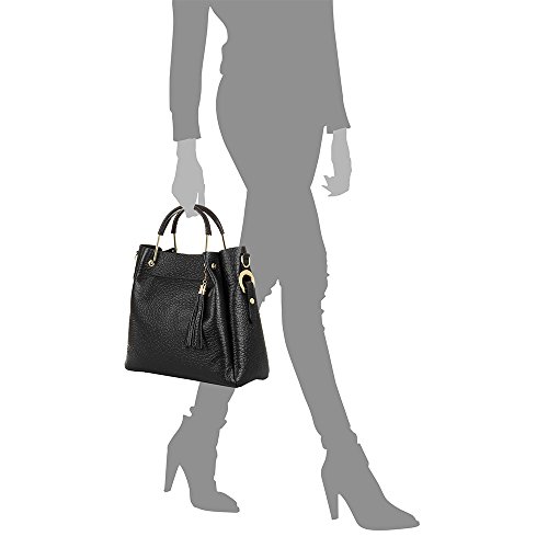 FIRENZE ARTEGIANI. Borsa donna vera pelle.Borsa Tote cuoio autentico.Pelle Dollaro, Maniglia rigida aleazione e cuoio.Design esclusivo.MADE IN ITALY. VERA PELLE ITALIANA. 34 x 30 x 14 cm.Colore: Nero