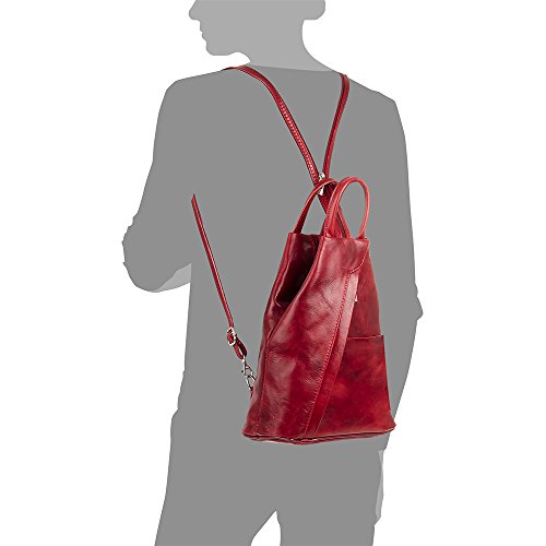 FIRENZE ARTEGIANI. zaino donna casual vera pelle. Zaino BORSA donna in pelle rifinitoTamponato. Maniglie in pelle. MADE IN ITALY. VERA PELLE ITALIANA. 24x31x15 cm. Color: Rosso granato