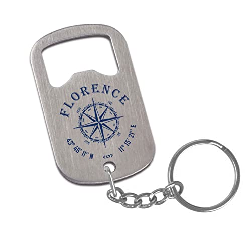 Firenze Italia Coordinate Viaggio Souvenir Piccolo Apribottiglie in Acciaio Inox con Portachiavi