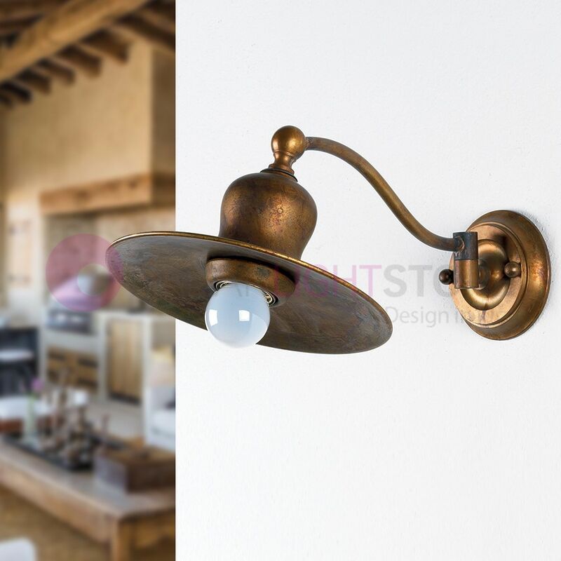 Lampada da parete, applique in ottone invecchiato. Lampada a parete, Applique a 1 luce orientabile realizzata in ottone anticato, invecchiato in stile classico rustico country, collezione Todi di Imas Firenze . La collezione di lampade Todi è ispirata al passato e ripropone materiali classici come l' ottone, sapientemente lavorati da artigiani secondo antiche tradizioni. E' composta da varie lampade a parete, sospensioni, plafoniere e lampadari ( VEDI CORRELATI ). Produzione 100% Made in Italy. Dimensioni: diffusore campanina D. 20 cm, h. 14 cm., sporgenza 36 cm., base a muro d. 9,5 cm. Illuminazione diretta Elettificazione: 1 x E27 max 50W Lampadine non fornite (possono essere utilizzate lampadine a basso consumo o led, con attacco grande E27). Per interni. Trattandosi di articoli artigianali, con dei tempi di lavorazione, decorazione e cottura lunghi, i tempi di consegna sono di circa 20-25 giorni lavorativi.