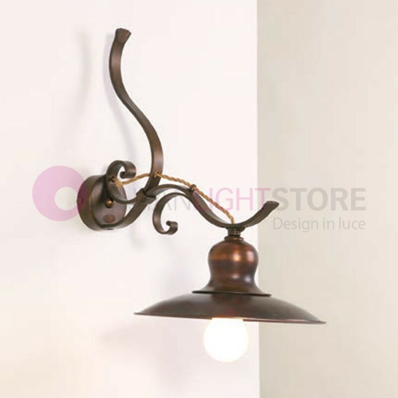 Lampada da parete, applique in ottone invecchiato. Lampada a parete, Applique a 1 luce orientabile realizzata in ottone anticato, invecchiato in stile classico rustico country, collezione Todi di Imas Firenze . La collezione di lampade Todi è ispirata al passato e ripropone materiali classici come l' ottone, sapientemente lavorati da artigiani secondo antiche tradizioni. E' composta da varie lampade a parete, sospensioni, plafoniere e lampadari ( VEDI CORRELATI ). Produzione 100% Made in Italy. Dimensioni: diffusore piatto D. 25 cm, h. 27 cm., sporgenza 62 cm., base a muro d. 23x12 cm. Illuminazione diretta orientabile Elettrificazione: 1 x E27 max 50W Lampadine non fornite (possono essere utilizzate lampadine a basso consumo o led, con attacco grande E27). Per interni. Trattandosi di articoli artigianali, con dei tempi di lavorazione, decorazione e cottura lunghi, i tempi di consegna sono di circa 20-25 giorni lavorativi.