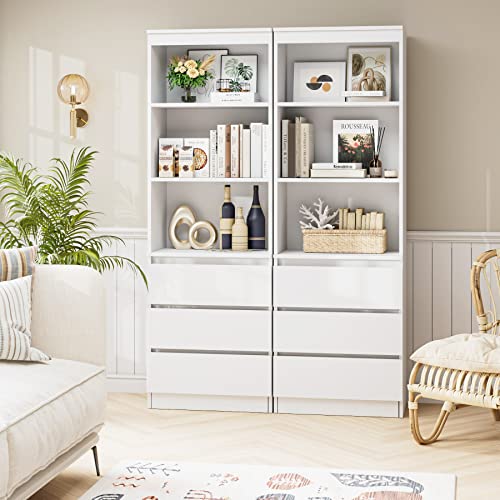 【Stoccaggio versatile】: questo scaffale autoportante non ha solo 3 cassetti, ma anche 3 scomparti aperti. Una tale combinazione può soddisfare le tue diverse esigenze. Perfetto per soggiorno, camera da letto, studio per esporre libri, cornici per foto, decorazioni, ecc.
