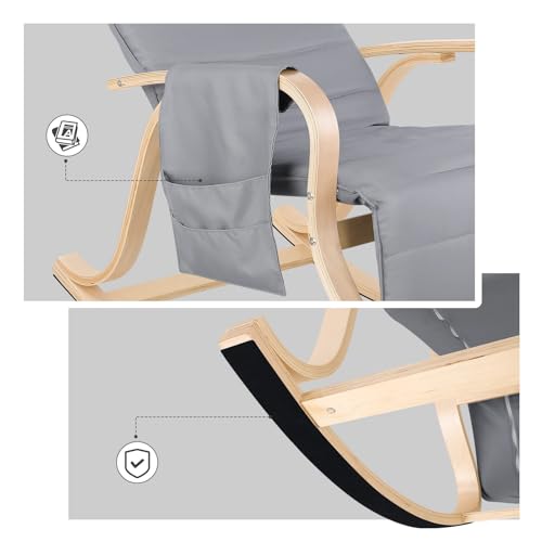 FirFurd Sedia a Dondolo in Legno di Betulla, Poltrona Dondolo Con Seduta Ergonomica In Tessuto Imbottito,Poltrona a Dondolo Regolabile a 5 Altezze, Portata 150 kg,per Salotto,Camera da letto Grigio