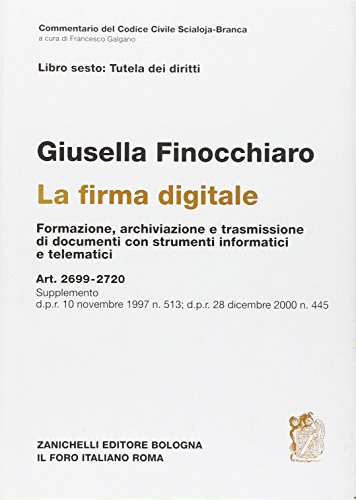 La firma digitale. Formazione, archiviazione e trasmissione di documenti con strumenti informatici e telematici. Art. 2699-2720. Supplemento DPR 10-12-1997, n. 513