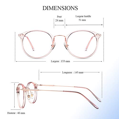 Dimensioni della montatura: larghezza del telaio: 133 mm, altezza delle lenti: 46 mm, ponte: 24 mm, lunghezza dei rami: 145 mm. Eleganti occhiali rotondi con filtro anti blu adatti sia agli uomini che alle donne.