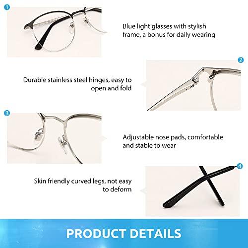 Occhiali anti luce blu: con lenti bloccanti luce blu per filtrare fino a 380-450 nm di luce blu nociva. Mostra l'ora digitale e affatica gli occhi, la visione offuscata o il mal di testa.