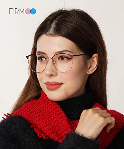 Firmoo Occhiali da lettura con filtro luce blu, da donna, antiriflesso, da uomo, con luce blu, per computer, con visione, anti-mal di testa, occhiali di protezione UV, occhiali in metallo, Rosso-oro