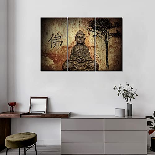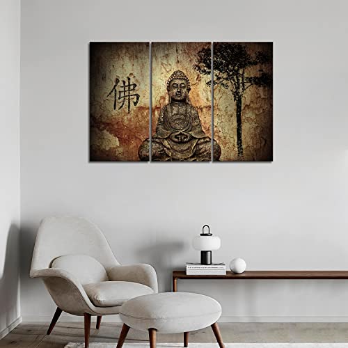 First Wall Art - Buddha Quadri Buddha Cinese nella Grotta Stampa su Tela 3 Pannelli Moderni Religione Decorazione da Parete per Soggiorno,Camera da Letto,Cucina