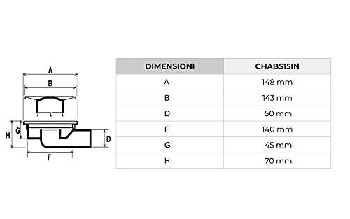 First Plast CHABS15IN Chiusino Sifonato in ABS con Griglia, Argento (Inox), 150x150 mm