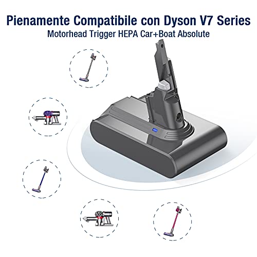 Eccellente Compatibilità: Compatibile con gli aspirapolvere Dyson serie V7, come Dyson v7 Animal, V7 Motorhead Pro, V7 Mattress, V7 Fluffy, V7 Trigger, V7 Absolute, V7 Car+Boat, ecc. La batteria sostitutiva con le stesse dimensioni della batteria originale, compatibile con il caricatore del sedile a muro originale.