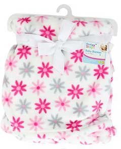 First Steps Soft Flower Patterned Pink Printed Flannel Baby Blanket 75cm x 100cm