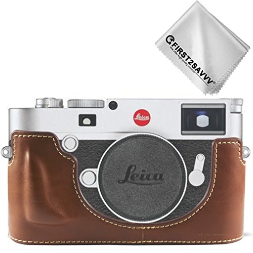 First2savvv marrone scuro Custodia Fondina in pelle sintetica per macchine fotografiche reflex compatibile con Leica M10 + pezza per pulire XJPT-Leica M10-D10G11