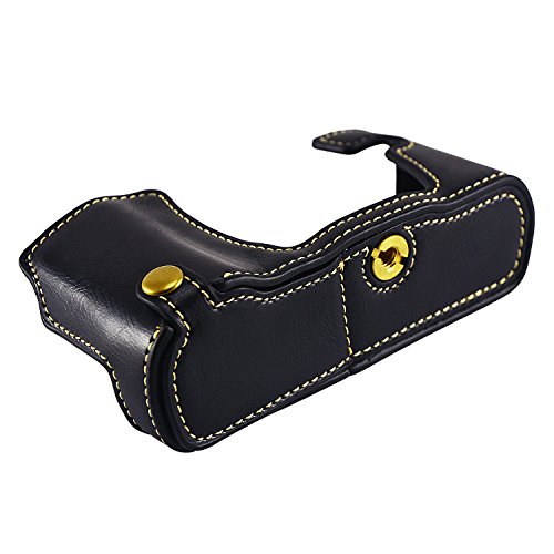 First2savvv XJPT- EM10-D01 Custodia Fondina in pelle sintetica per macchine fotografiche reflex compatibile con Olympus OM-D EM10 nero