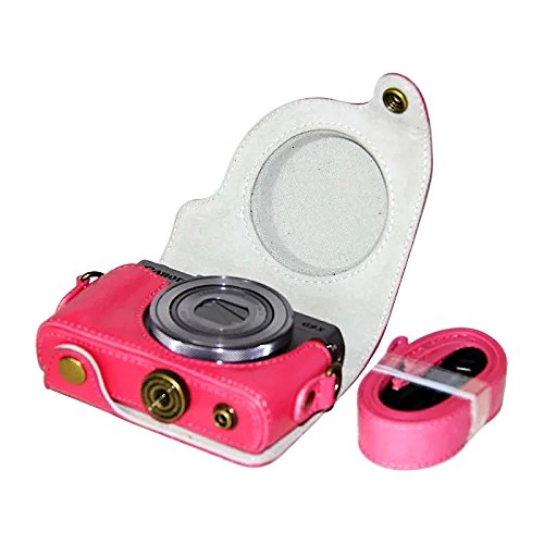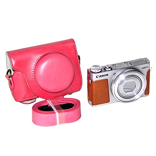 First2savvv XJPT-G9X-02G6 Custodia Fondina in pelle sintetica per macchine fotografiche reflex compatibile con Canon PowerShot G9X G9 X rosa + Mini treppiede