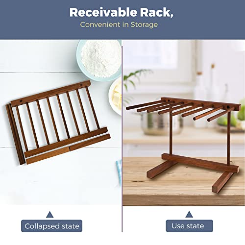 FIRSTBUY Stendipasta Pieghevole, Essiccatore di Spaghetti per Spaghetti Fatti in Casa, Stendipasta in Legno Naturale con 8 Barre di Sospensione, Facile da Conservare (Acacia)