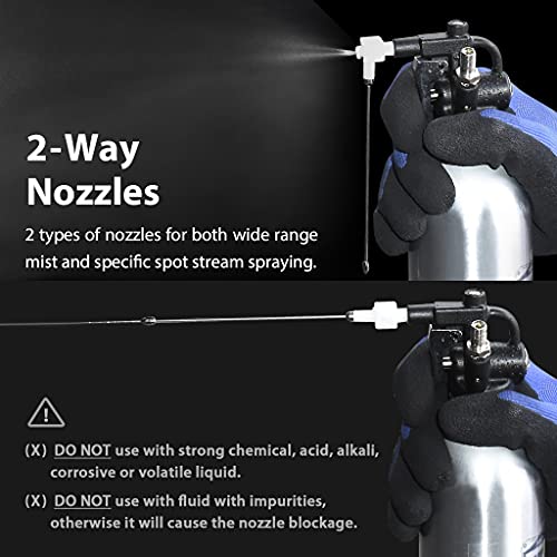 FIRSTINFO - bomboletta spray ricaricabile, in acciaio inox, manuale pneumatica per aria compressa, ricaricabile, ugello a 2 vie con getto dritto e ampio spray nebulizzatore