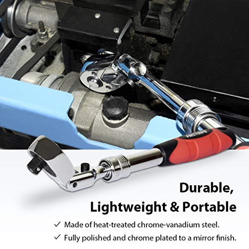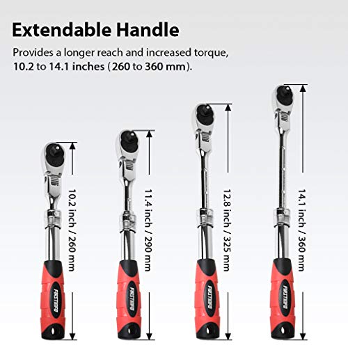 FIRSTINFO F3222NC | 3/8" Chiave a cricchetto reversibile | 72 Denti | Flexi-Head | Estensibile 260-360mm
